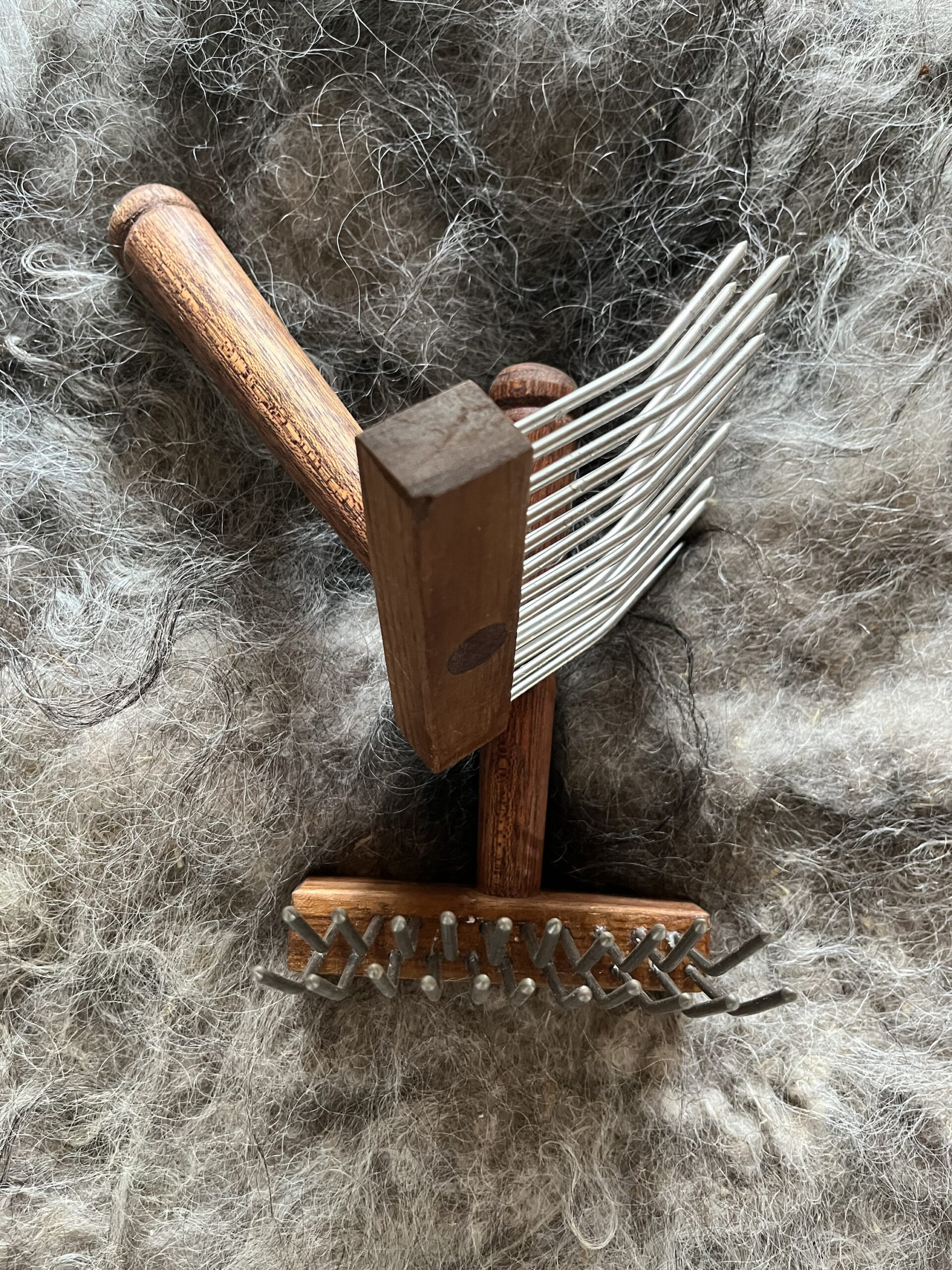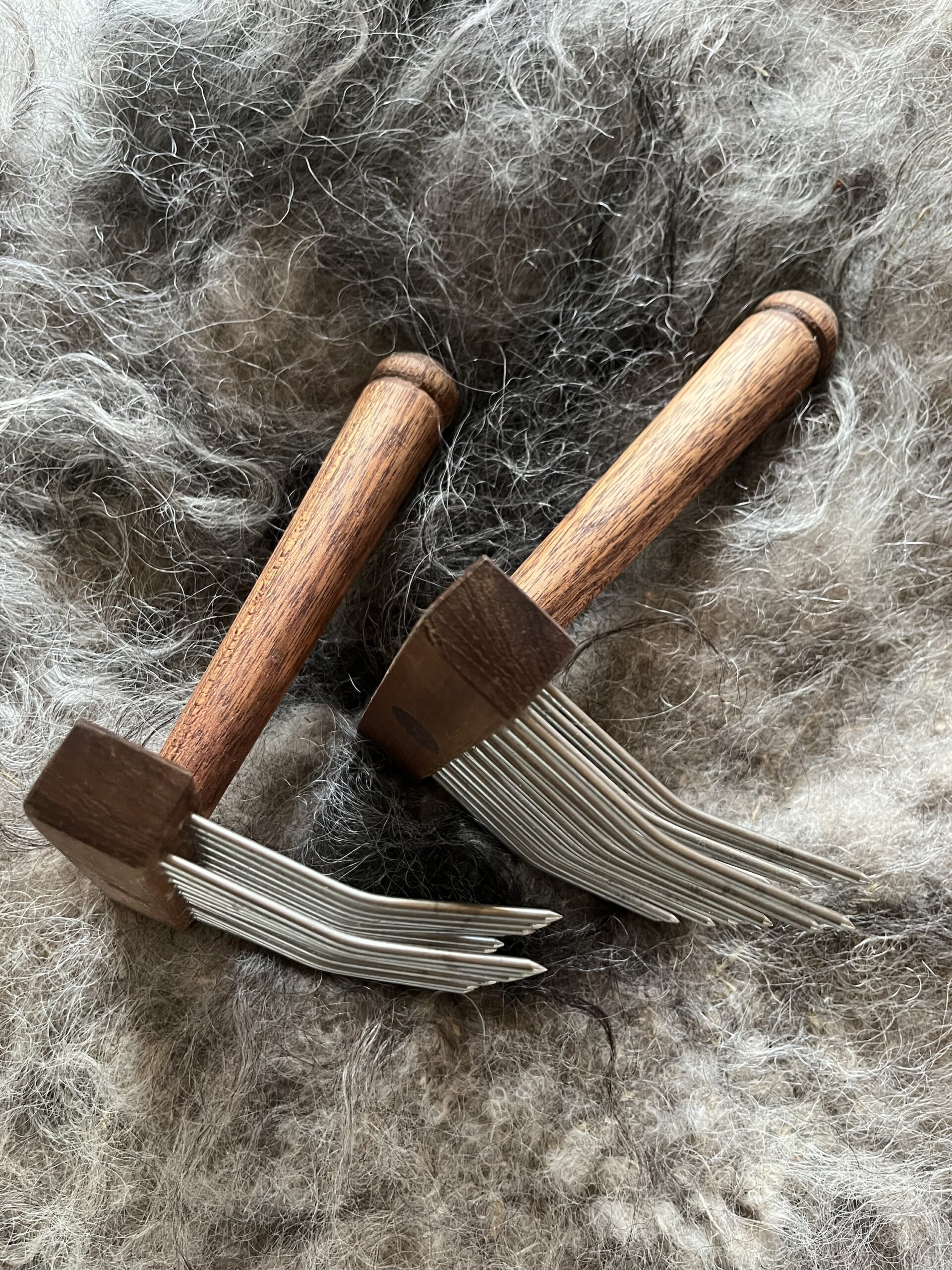 Uld fra egne får, kartet og spundet på gården